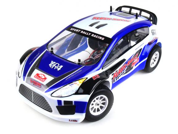 Полноприводная радиоуправляемая модель раллийного автомобиля в масштабе 1/10 с коллекторным двигателем 550 класса. Установлена влагозащищенная электроника.