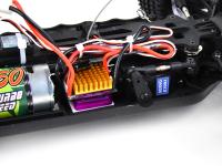 В модели установлен коллекторный двигатель 550 класса с воздушным охлаждением; влагозащищенный регулятор скорости 300А с большим радиатором охлаждения