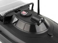 Обновлённый радиоуправляемый катер для рыбалки с быстросъёмной крышкой аккумуляторного отсека в которую встроена управляемая фара головного освещения и новым передатчиком, работающим от аккумулятора.