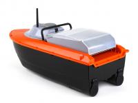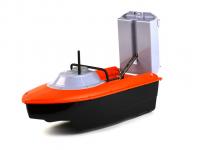 Сброс прикормки осуществляется дистанционно с радиопередатчика. Катер устойчив на волнах. Винты двигателей защищены от попадания лески и водорослей. На катере установлен дистанционно управляемый фонарь приманка для привлечения рыб и навигационные светодиоды. Грузоподъемность катера до 1.5 кг.