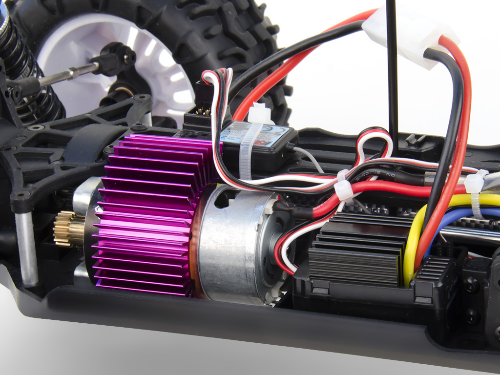 В модели установлен мощный коллекторный двигатель 550 класса; влагозащищенный регулятор скорости