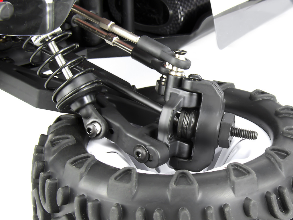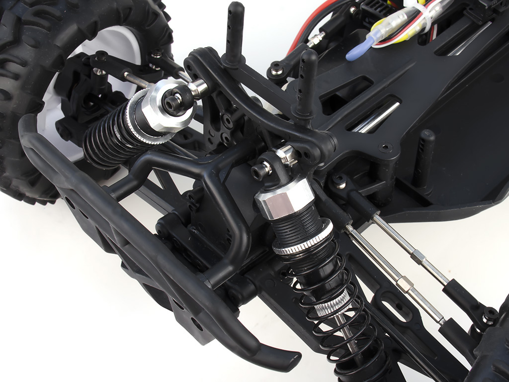 Модель имеет полностью настраиваемую подвеску, которую можно настроить под любую трассу и характер вождения. Установленное фрикционное сцепление предотвращает поломки трансмиссии при критических нагрузках. Большие масляные амортизаторы с точной регулировкой жесткости выполнены из алюминия.