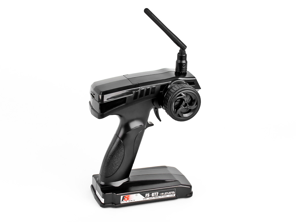 2-х канальная цифровая аппаратура пистолетного типа; возможно переключение каналов в реверс; триммеры руля и газа; установка конечных точек; необходимы 4 батарейки размера АА.